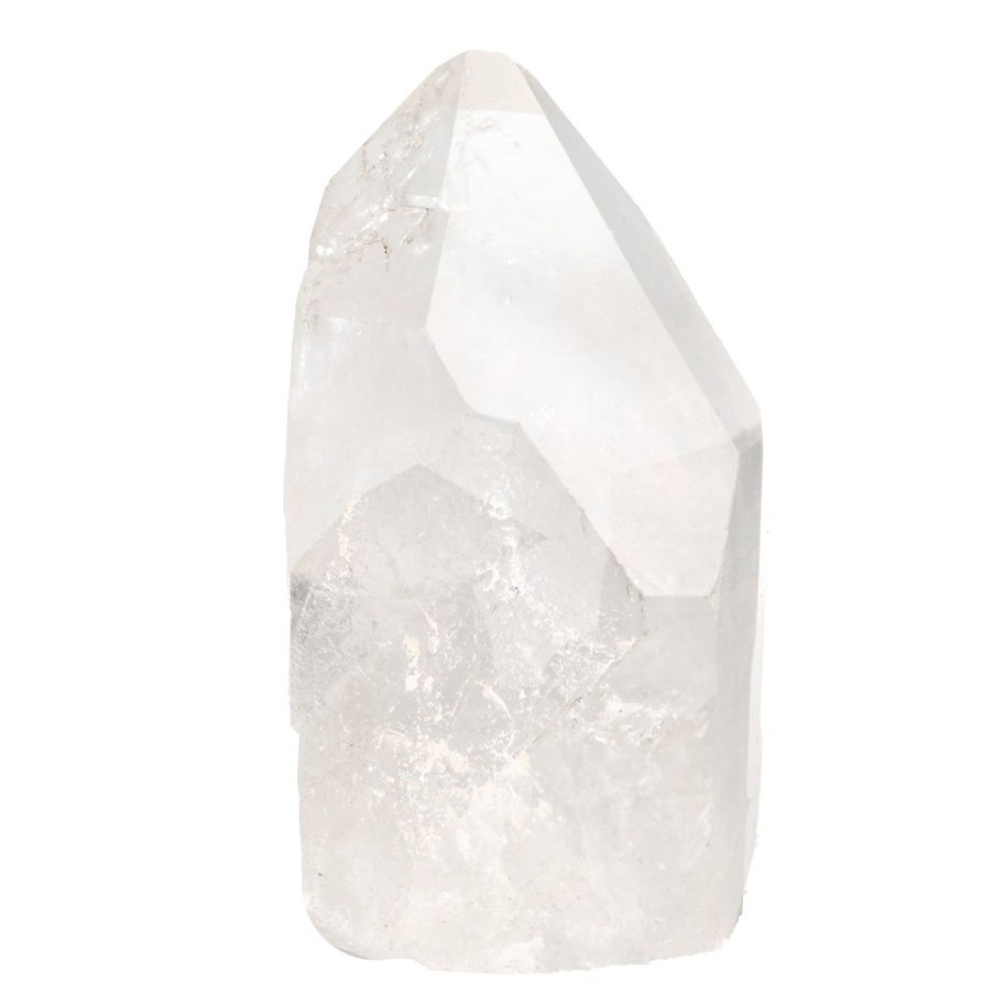 Puntas naturales de cuarzo blanco en estado bruto, con base pulida para una correcta estabilidad y exposición. Cada pieza conserva su forma y textura original, respetando la estructura natural del cristal.